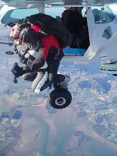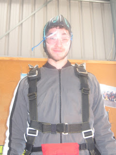 That's our tandem master Tony suiting me up. He's done over 4300 jumps and is a boat/plane electrician as well. Kind of an awesome job.