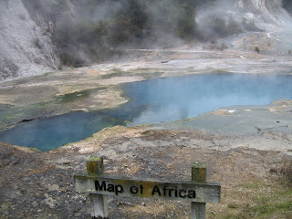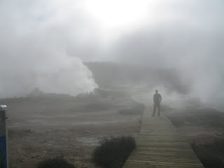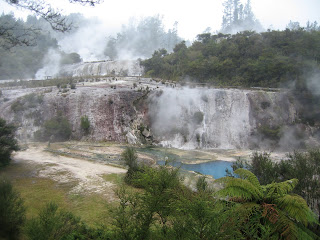 Between Taupo and Rotorua is this crazy geothermal park, Orakei Korako, so we ferried on over there and went for a long walk around the park. There are some awesome pictures of this place as well. NZ is so geothermally active because it lies on the Indo-Australian and Pacific plates, and the Pacific plate is trying to get down underneath so go figure, lots of activity.