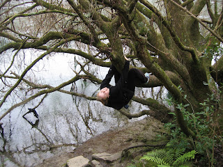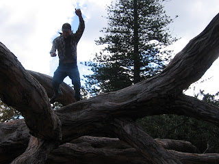 Up in The Domain playing on this weird tree. It's the same park I like to go running in a lot.