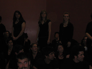 Some of the group after the performance. The Whit. girls are missing. Falen's making a perfect Haka face.