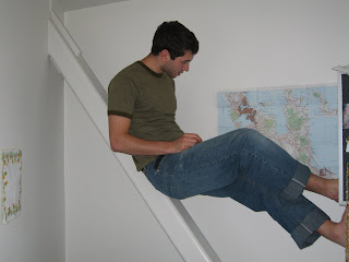 Sean sitting in my room on this weird diagonal pole looking at a map of Coromandel. It's one of my favorite sit spots in the apt...the guy's room has one too.