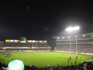 We went to a Blues Rugby game that evening (the blues is the Auckland rugby team) and they won! It was a good time with the boys and Liz since we all piled into my car and went together. We sat in the terrace (cheap cheap tickets) where people like to throw their plastic beer bottles. Two guys behind us were screaming Auckland into each other's ears and then by the end of the game one of them was completely passed out. It was pretty hilarious. Charlie and Falenczykowski (that's pronounced Fay len cha cow skee) play rugby here so they're always particularly excited about rugby related things.